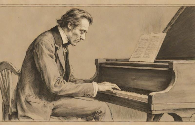 As we celebrate Chopin's birthday, it's fitting to highlight one of his most beloved pieces, the "Fantaisie-Impromptu" in C-sharp minor, Op. 66. Composed in 1834 but published posthumously in 1855, this piece exemplifies Chopin's ability to fuse technical brilliance with deep emotional expression. The "Fantaisie-Impromptu" is a whirlwind of passion and virtuosity, its outer sections marked by rapid fingerwork and ardent melodies, surrounding a serene, lyrical middle section that provides a moment of reflective calm.